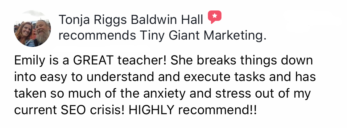 "Emily is a phenomenal mentor for anyone wanting to grow their business and to develop a stronger understanding of the importance of SEO. After taking her course, I know I can scale my business by implementing the strategies she has taught. Such a great learning experience." Leah Hall
